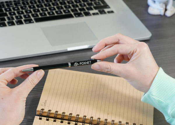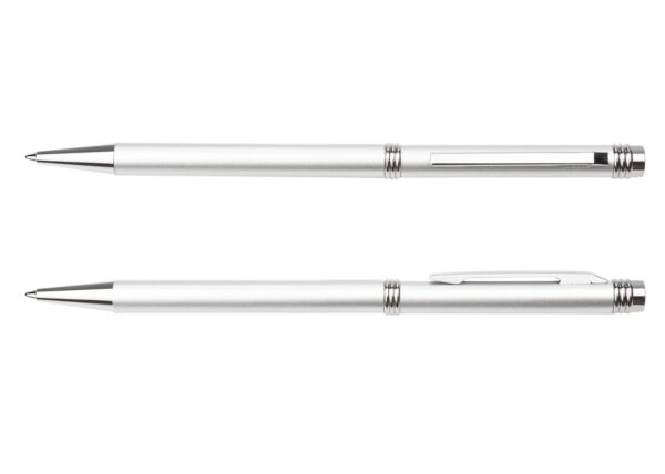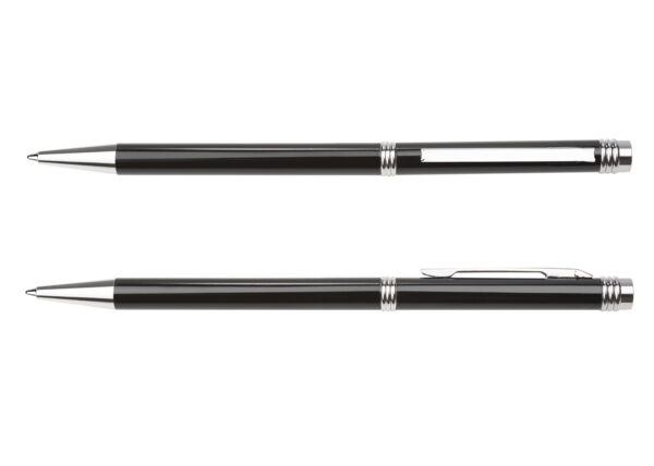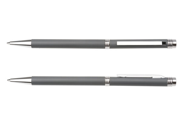 Este elegante bolígrafo combina funcionalidad tiene un aspecto sofisticado y sólido. El clip de hierro proporciona una sujeción segura a cualquier bolsillo o cuaderno. Tinta de gel para escritura suave y fluida, perfecta para escritura prolongada. Mecanismo de apertura Twist.