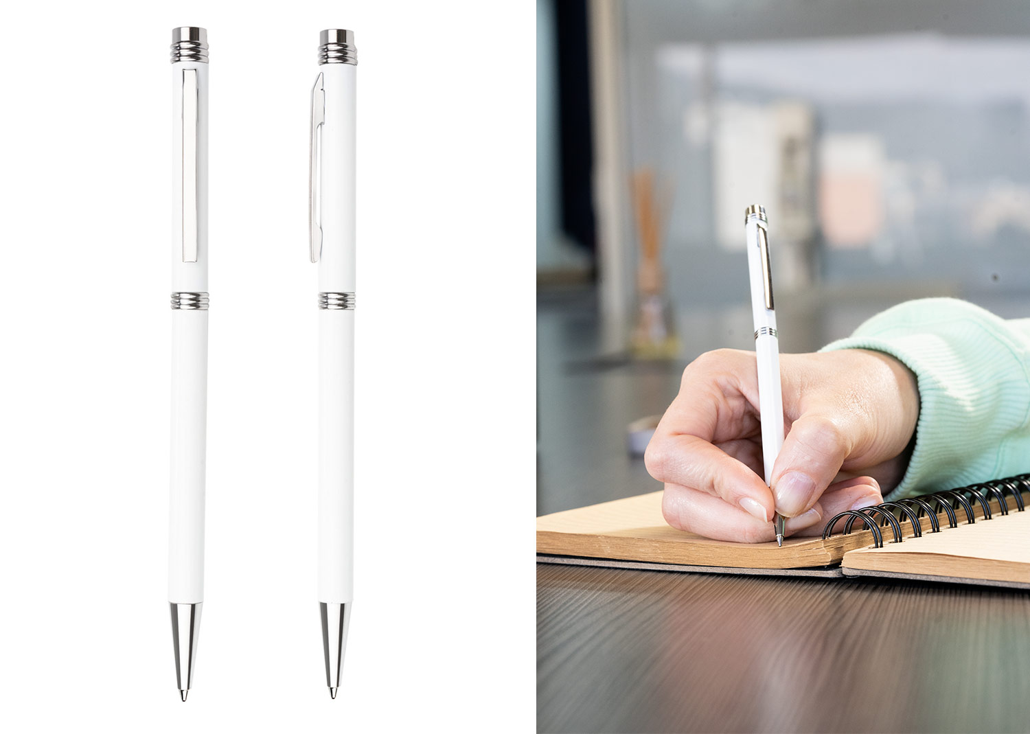 Este elegante bolígrafo combina funcionalidad tiene un aspecto sofisticado y sólido. El clip de hierro proporciona una sujeción segura a cualquier bolsillo o cuaderno. Tinta de gel para escritura suave y fluida, perfecta para escritura prolongada. Mecanismo de apertura Twist.