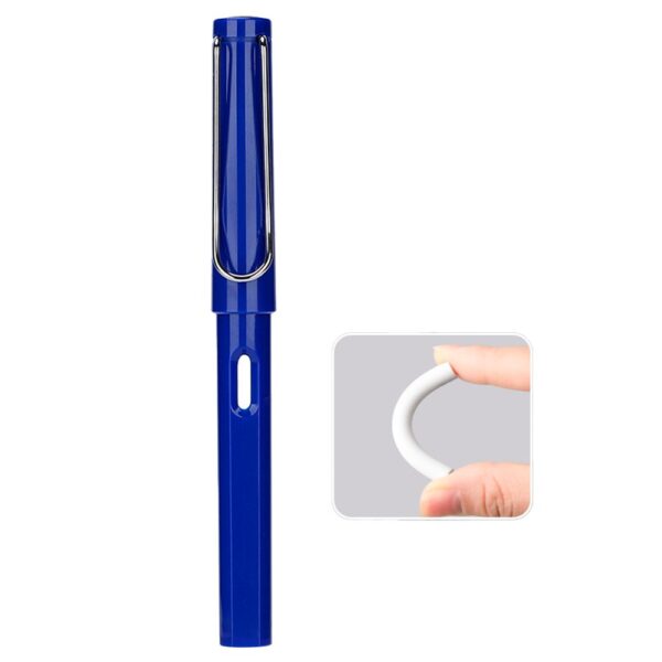 Bolígrafo con tapa removible, clip metálico y mina infinity de larga duración. Incluye borrador y mina de repuesto.