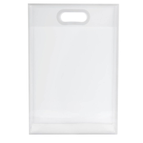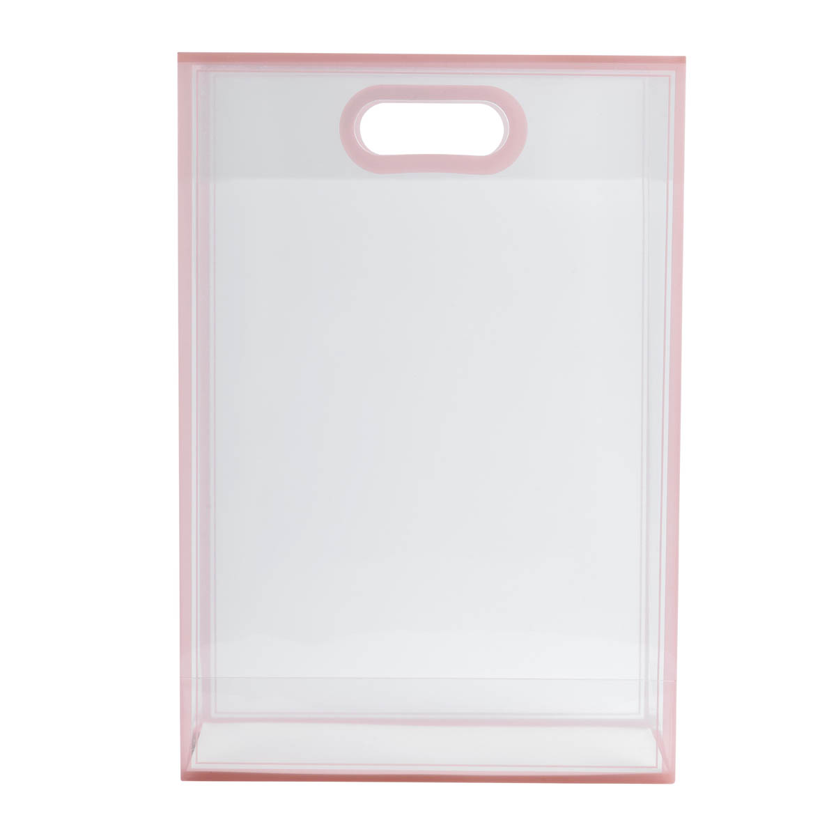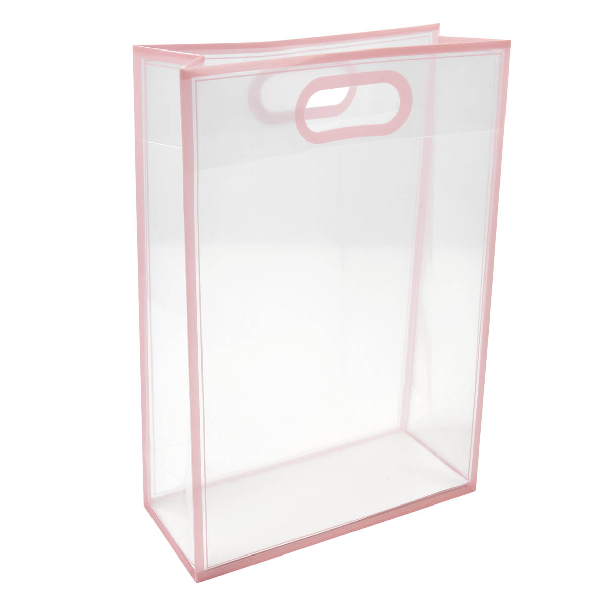 Bolsa de PVC con fuelle. Su diseño transparente con bordes de color la hace ideal para crear tus propios sets de regalo. Su asa está diseñada para llevarla cómodamente con una sola mano. Perfecta para cualquier ocasión especial.
