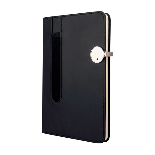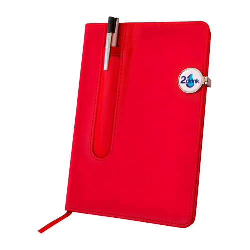Libreta con 80 hojas de raya. Incluye compartimento para bolígrafo y broche circular metálico imantado. Bolígrafo no incluido.