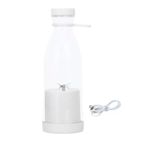 Vaso plástico doble pared con base en silicona. 4 Aspas en acero inoxidable. Tapa removible. Potenica 40 W. Carga USB con cable incluído. Capadidad 380 ml. De 7. x 23 cm .