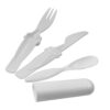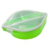 Lonchera con 3 compartimentos en el interior. Incluye portacubiertos con cuchara, tenedor y cuchillo. Tapadera con pestañas para un mejor cerrado. No recomendado para microondas.
