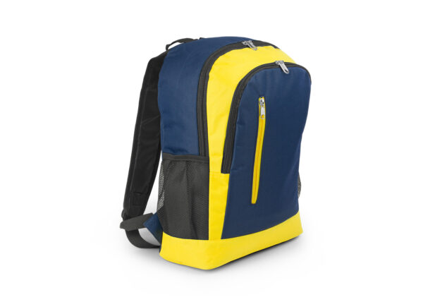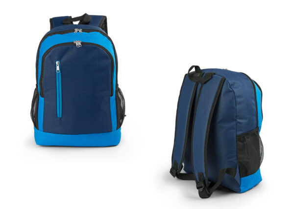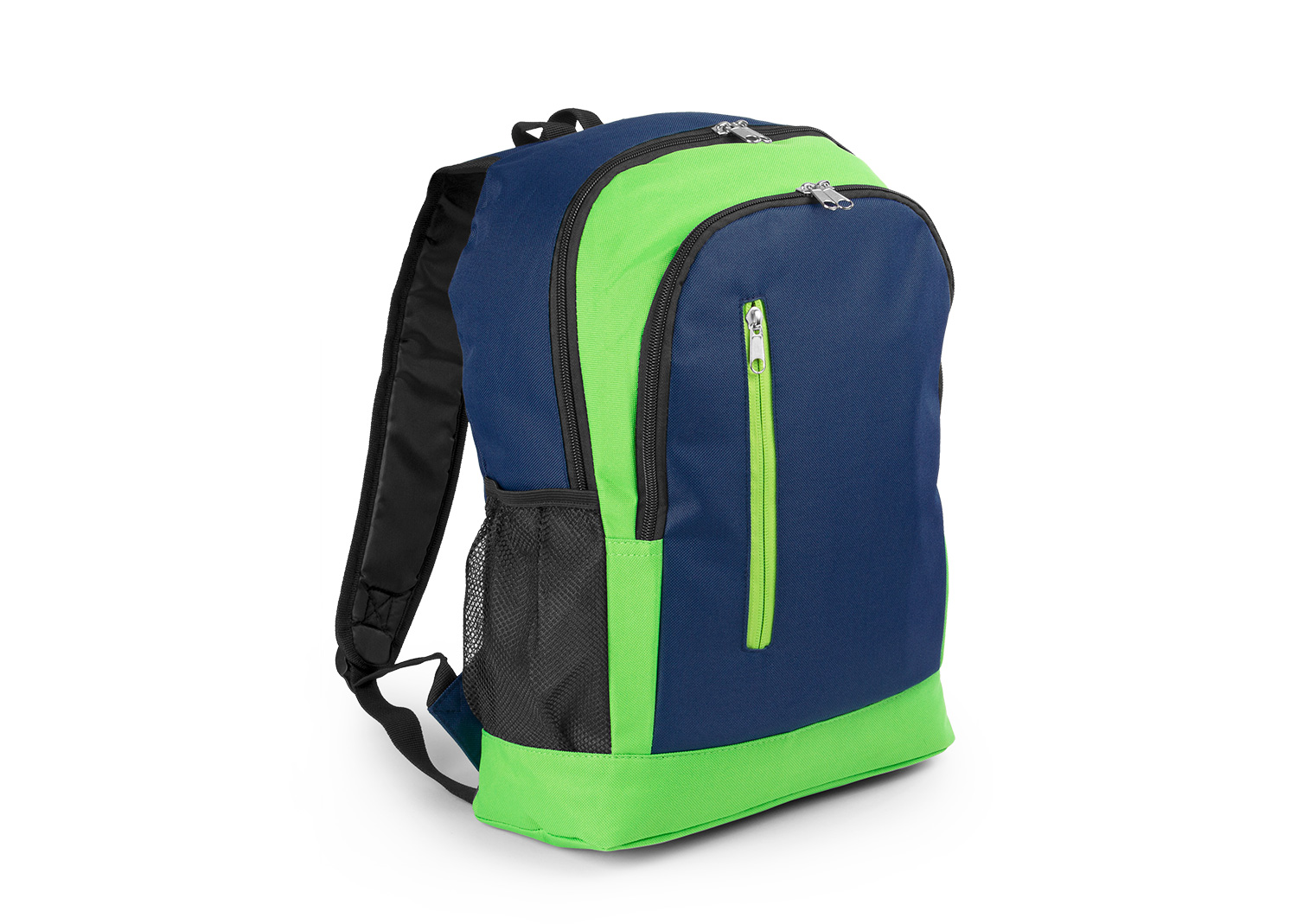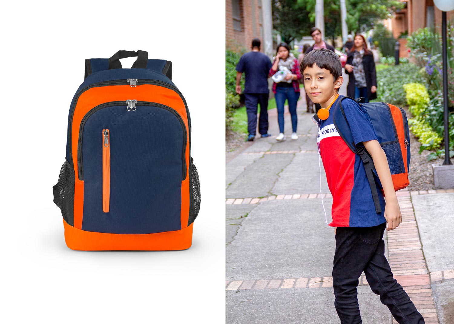 Morral con cargaderas ajustables, bolsillo principal y frontales con con cierre en cremallera. Bolsillos laterales en malla.