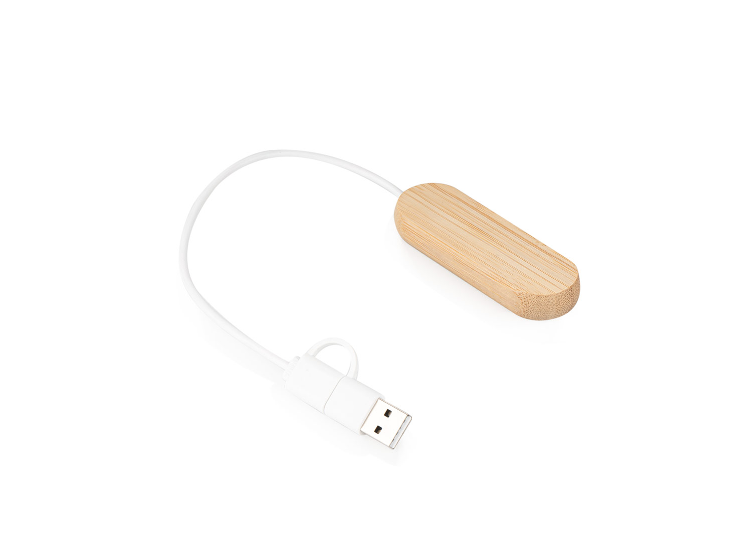 Multipuerto USB 2.0 que incluye dos puertos de salida USB-A para carga y transmisión de datos, y un puerto Tipo-C para las mismas funciones. Además, cuenta con puertos de entrada USB-A y Tipo-C.