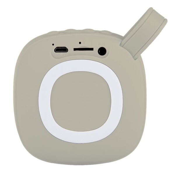Altavoz Bluetooth 3W en silicona y parlante en lino.Tiempo de reproducción 3 horas. Radio FM.