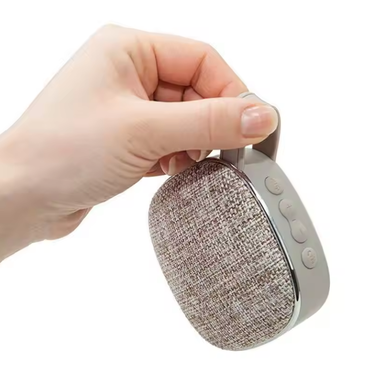 Altavoz Bluetooth 3W en silicona y parlante en lino.Tiempo de reproducción 3 horas. Radio FM.