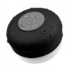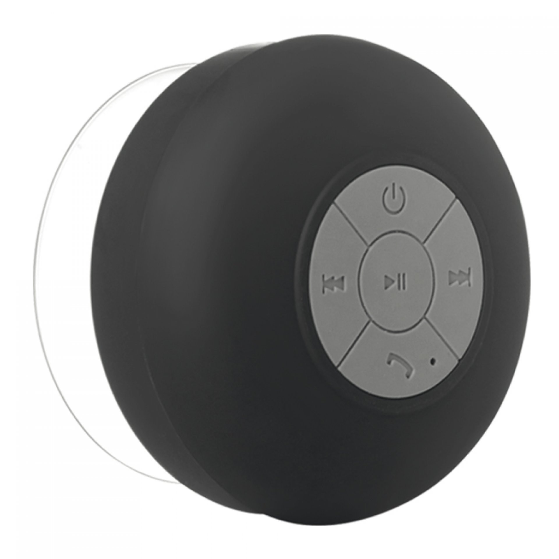 Bluetooth recubierto en caucho, resistente al agua, con chupa de succión en la parte de atrás. De 5,5 x 8.3 cm de diámetro.