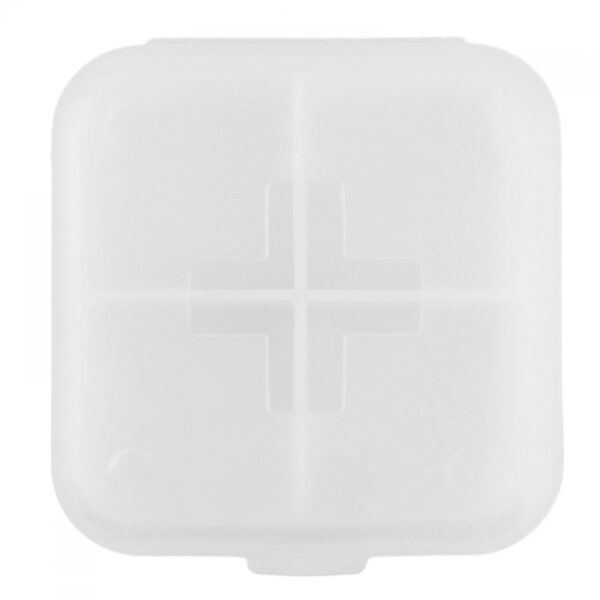La tapa tiene una cruz médica en alto relieve. De 6.5 x 6.5 x 2.3 cm.