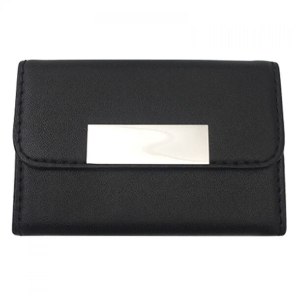 En cuerina con placa metálica. De 10,5 X 6,5 X 1,5 cm.