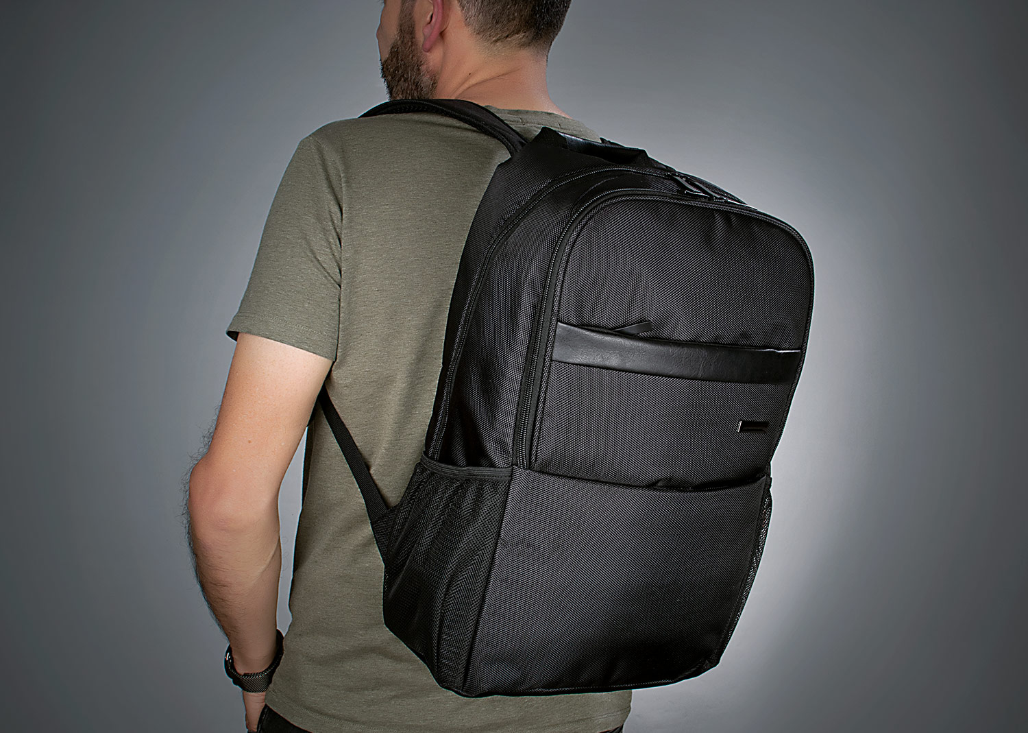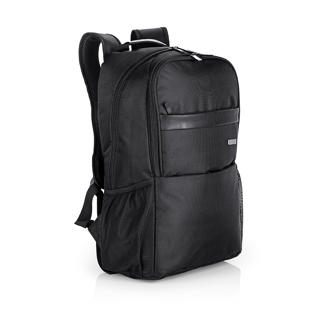 Morral Portalaptop con espaldar ergonomico, con cargaderas ajustables y acolchadas, 2 bolsillos exteriores, 1 bolsillo medio con compartimentos especiales en el interior, el bolsillo principal tiene un compartimiento para dispositivos portatiles de 15″, 2 bolsillos laterales en malla ideales para botellas y cables . correa en la parte trasera para ajustar el morral a un trolley, Incluye placa metálica para marca láser.