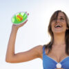 Raquetas plásticas con bola de chupas. Correa ajustable. De 18 cm de diámetro.