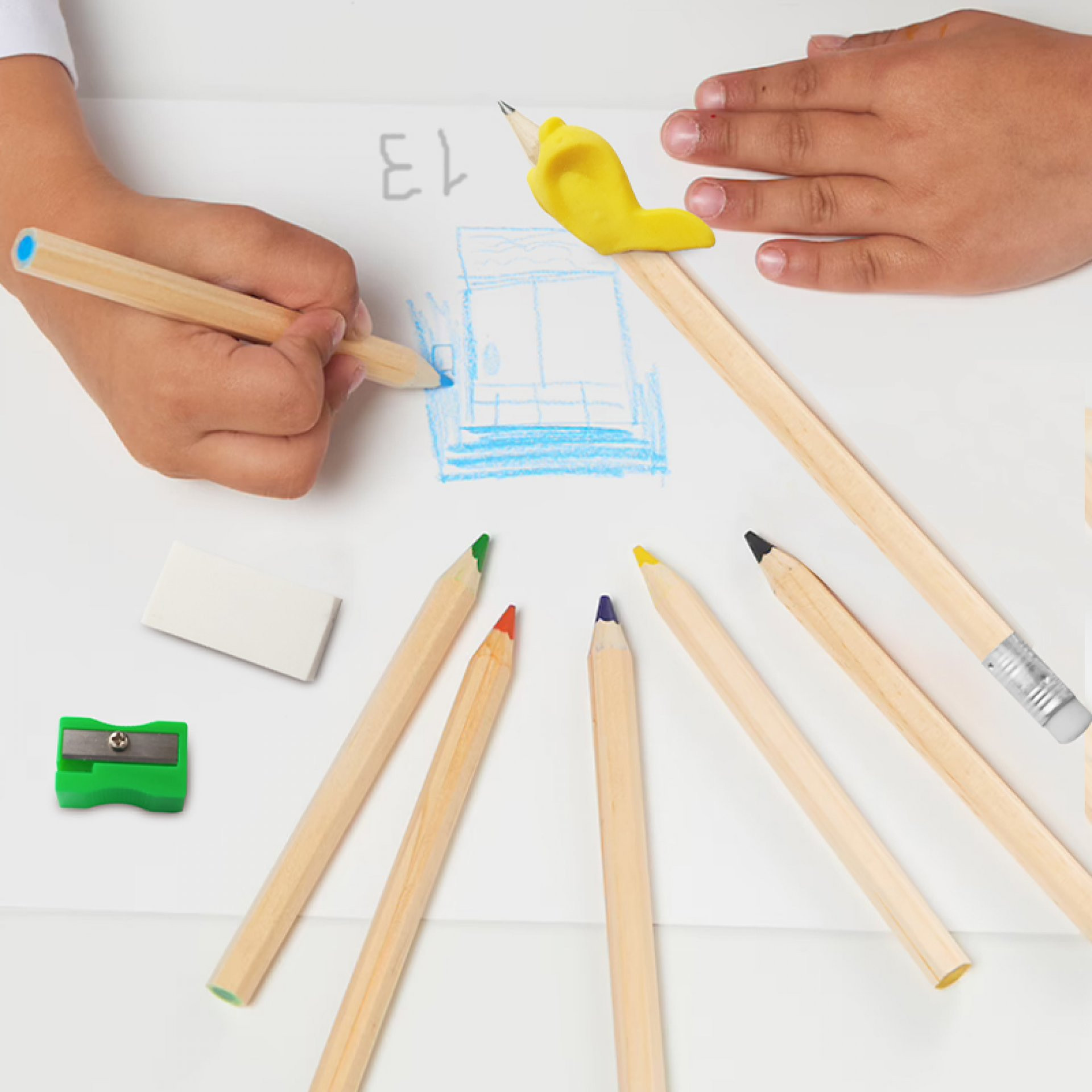 Set escolar que incluye lápiz, 6 colores de madera, regla de 20 cm, borrador de nata, tajalápiz