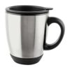 Doble pared. Pared interna de plástico y externa de acero inoxidable. Tapa de plástico con ranura. Incluye caja individual. No usar en microondas ni lavavajillas.