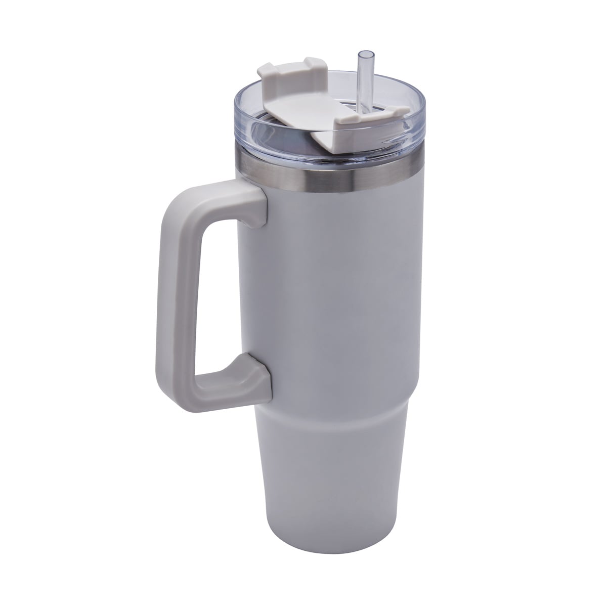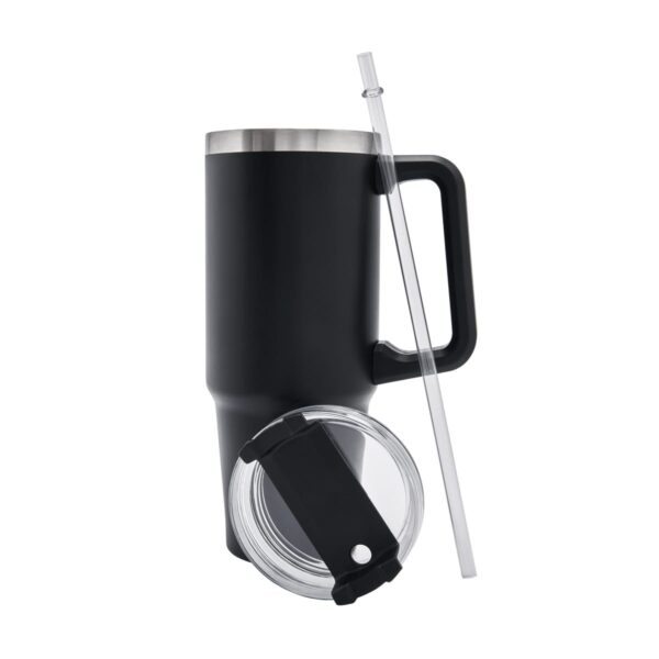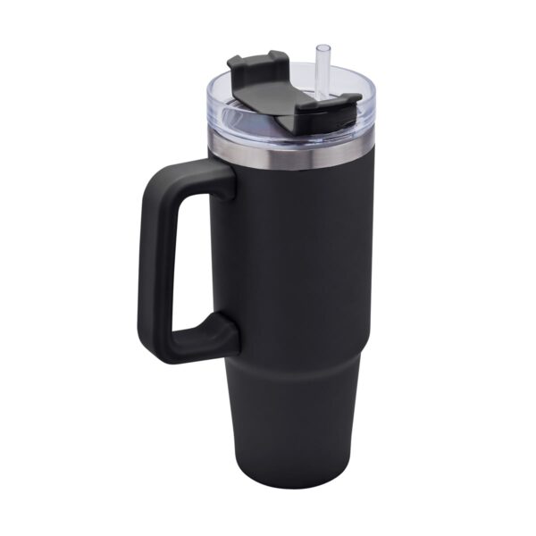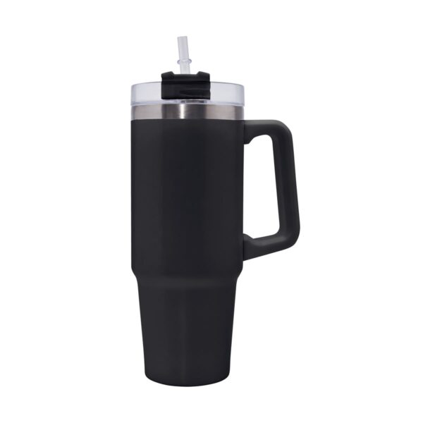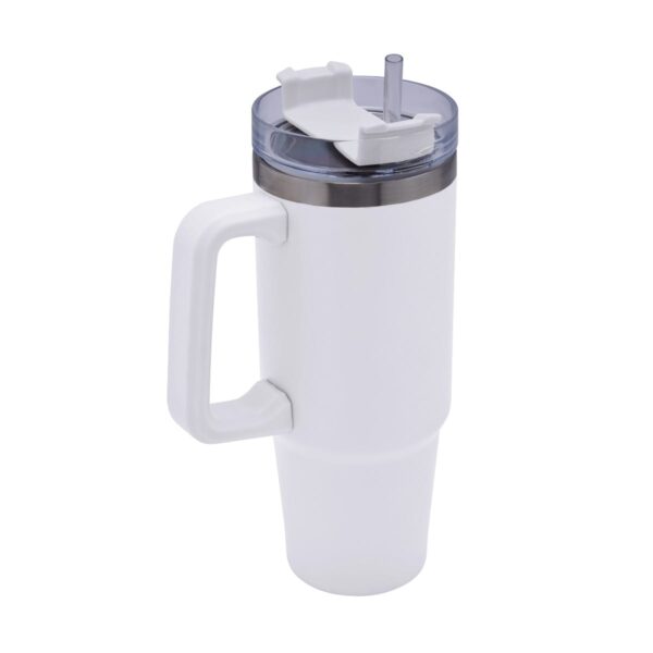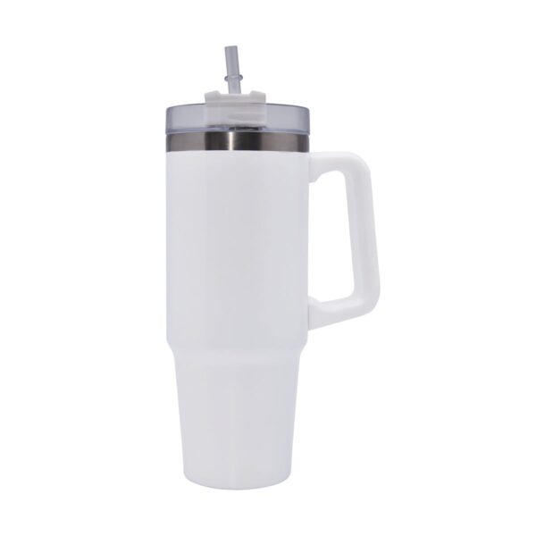 Doble pared. Cerrado al vacío. Pared interna y externa acero inoxidable. Tapa de plástico con cierre de rosca y sobretapa giratoria de 3 posiciones con ranura para popote. Incluye popote y asa de plástico. Mantiene temperatura caliente 6 hrs y temperatura fría 8 hrs aproximadamente. Incluye caja individual.