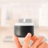 Vela aromatizada con olor a lavanda en estuche metálico con tapa rosca. Color blanco. De 5.3 cm de diámetro x 3.7 cm.
