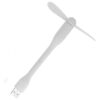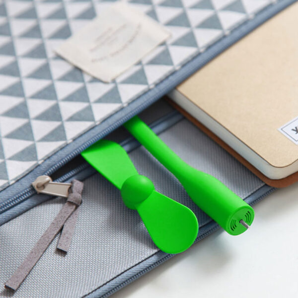De 2 aspas flexibles. Funciona con puertos USB y baterías externas. De: 8,9 cm x 13 cm x 2,1 cm.